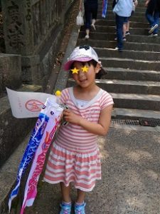 この日はこどもの日だったので、神社のほうで鯉のぼりを用意してくださっていて、途中でいただくことができました。(数に限りあり。)それも頑張れた一因だったかな。