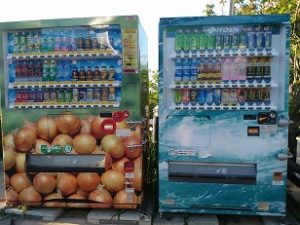 変わった自販機を発見。たまねぎと渦潮。